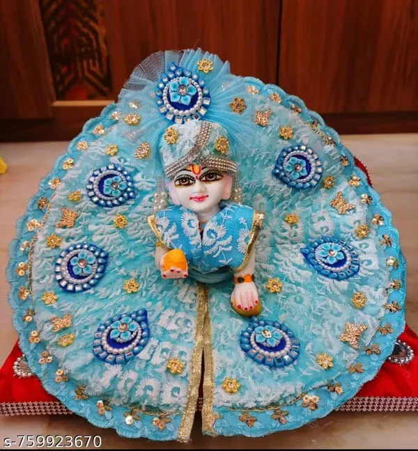 Multicolour 2 No Size Heavily Ornamented Net Fabric Laddu Gopal Poshak With..More